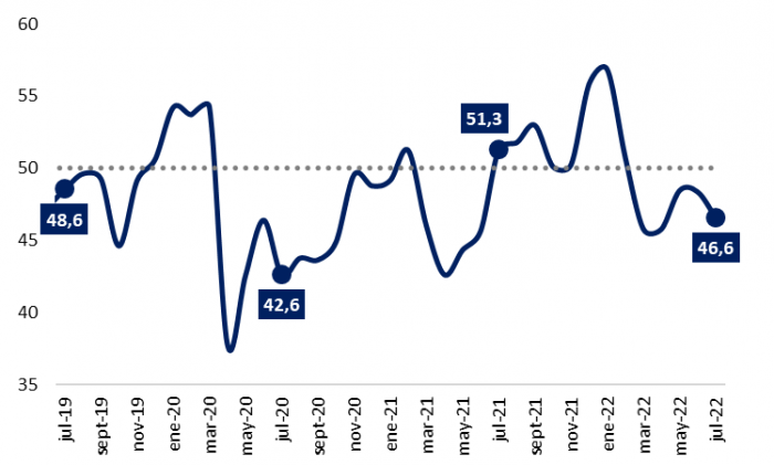 A finales de julio, el Índice de Confianza al Consumidor (ICC) cerró en 46,6, levemente menor al registrado el mes anterior, y también por debajo a lo verificado en julio de 2021 (51,3). Desde el segundo mes del año no se registran datos en la zona de optimismo. Según el Banco Central del Paraguay (BCP), el índice desagregado por los subíndices como personal, del hogar y del país tuvieron comportamientos mixtos. En este caso, el personal tuvo una baja comparada al valor verificado el año pasado, aunque se ubicó levemente por encima de la zona de optimismo, en 51,3. Para el caso de la confianza del hogar tuvo una caída interanual, alcanzando 55,5. Y, por último, la confianza del país también fue menor a lo registrado el año pasado siendo de 32,9.