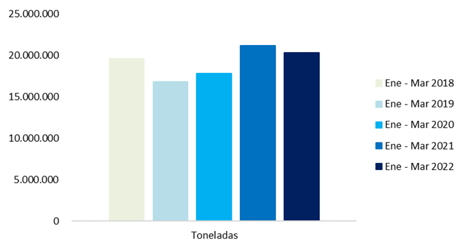 En lo que va del 2022, las importaciones de soja por parte de China han disminuido. Al mes de marzo, el volumen acumulado fue de 4,2% menos que el mismo periodo del año anterior. En monto presentó un incremento importante de 20,9%, lo cual se ve explicado por el aumento del precio de la soja en el mercado internacional.