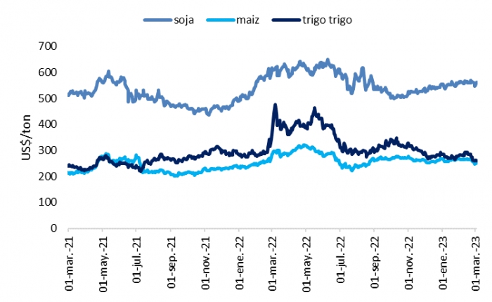 Asimismo, el maíz se encuentra en 251,9 US$/ton. Esto, al igual que el trigo, obedece por la posible prolongación del plan que mantiene un corredor seguro para las exportaciones agrícolas de Ucrania.